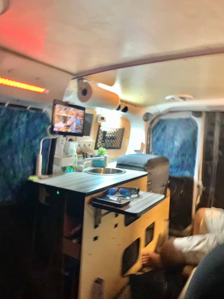 Look closely at the two photos above. See how limited the counter space is in the Cascade camper van? There is very little room to safely place a Little Buddy heater inside this van!