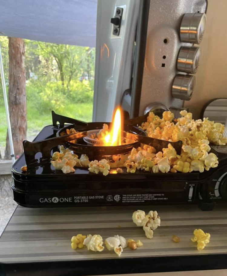 Anyone using a Mr. Heater Little Buddy…please be extra cautious! It uses an active flame 🔥 that stays on all the time, producing 3800 BTUs of heat! Little Buddy has a safety shut-off feature if tipped or knocked over. However, Little Buddy is a top heavy, portable heater that uses a one pound, propane canister that threads into it. There are no lower, safe areas inside Cascade camper vans…except on the floor behind the passenger seat…when the bed is made into a sofa! Some people have placed their heater’s on the sink counter or on-top the refrigerator’s plastic lid for short durations to warm up the van; keeping a watchful eye on rising temperatures. Anything that falls on top or in front of the Little Buddy heater will most likely catch on fire with its active flame that has carbon monoxide safety protection & tip over, shut-off features. Please remember… the Little Buddy heater has no side & front sensors for fire detection!