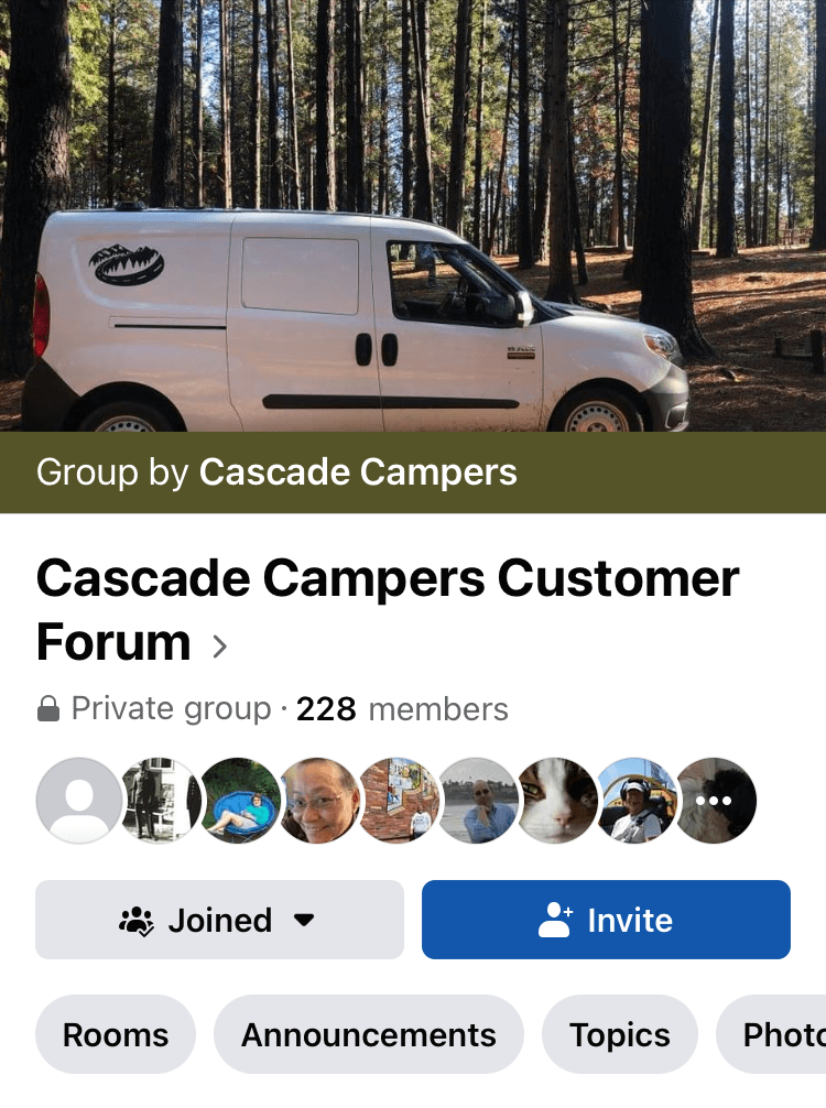 2. One Designs create a following of like-minded owners. Many of us joined a private Facebook forum for Cascade Camper Van owners. As of 6/26/21 we have 228 members and growing!