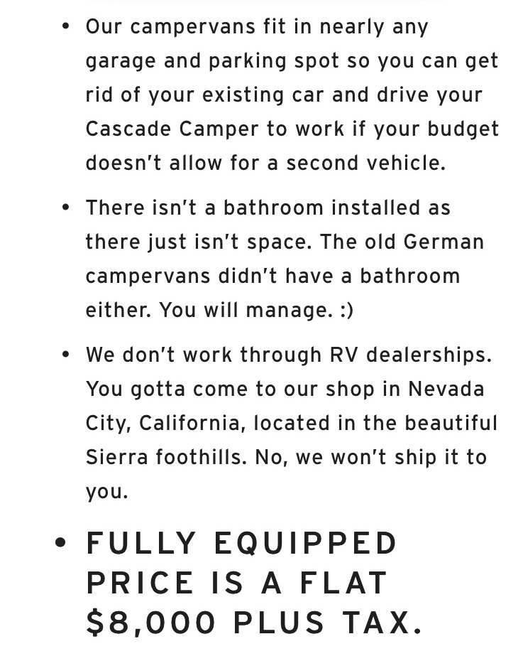 DIYers spend thousands of dollars impossible to fully recoup when they sell or trade-in their camper vans. At least we know EXACTLY what we spent having Cascade build our micro campers with add-on options like van windows, side table, extra set of curtains, etc.