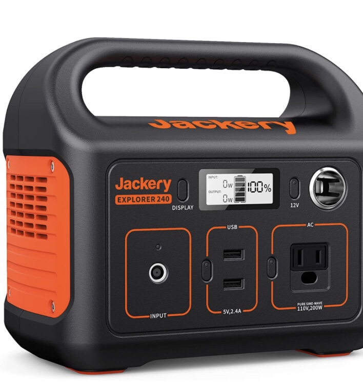 I fully charge my 240 watt Jackery at home before hitting the road. And recharge the Jackery at a campsite using an extension cord if shore power exists or plug it into my 100 watt solar panel for recharging. Most campers use shore power for their TVs. You often see them sitting outside watching favorite movies. However, in remote areas, you will need a gas generator or rechargeable battery pack to power your electronic devices.