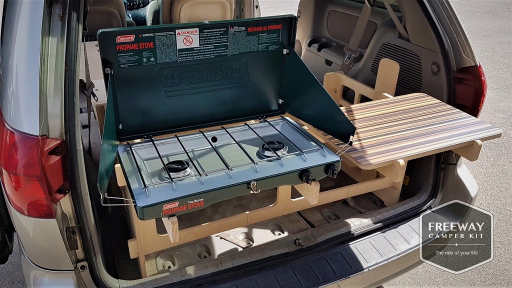 Let me introduce you to a Canadian company (in Quebec) called Freeway Camper Kit. They sell pre-made, camper conversion kits for many types of vehicles. The one I particularly like is a Weekender kit called Nanaimo, especially designed for Dodge Caravans & Chrysler Town & Country vans.