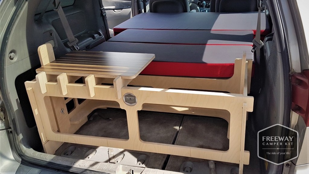 If you have an older Dodge Caravan, Chrysler Town & Country, Honda Element, Toyota Sienna, Ford Transit Connect, etc. you might want to consider the Canadian Freeway kits which look better than most DIY builds on a budget! Freeway uses raw or stained birch wood for their kits. They are reasonable priced, modular, and can be easily installed & disassembled when not camping or living in your vehicle.