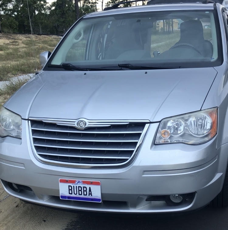 Funny thing is many people think my “Bubba” plate is one I officially purchased from Ohio Bureau of Motor Vehicles (BMV). I found it online and designed it using the optional Ohio state template. I don’t have to pay extra money to BMV each year for a vanity plate; another advantage for van campers. Bubba is my daily driver when I stay in Ohio. Bubba is a Chrysler Town & Country minivan with 125K miles that I use for local trips & camping. I’m currently converting it to a DIY camper that can be quickly changed back to a passenger or cargo van.